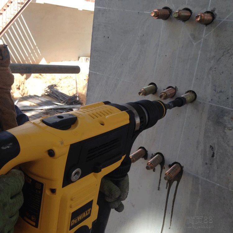 2、钻孔:在规定位置打孔,如遇到混凝土构件内部钢筋,在不影响砼施工和强度的前提下移开,如移开的距离太大,应与甲方和设计协商进行加筋补强。