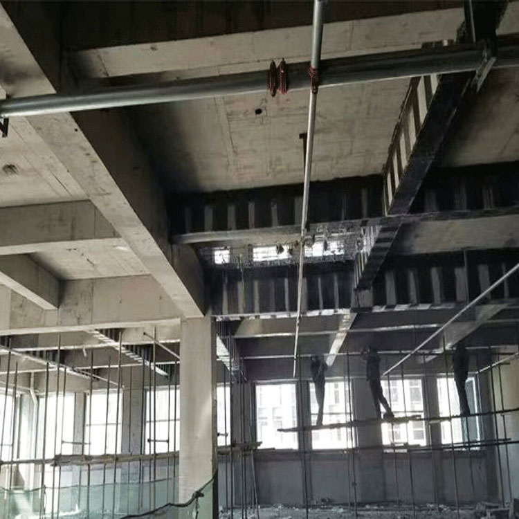 是根据结构构件受力分析计算结果和受力特征,应用配套树脂将碳纤维粘贴于强度不满足受力要求的混凝土构件外部相应部位,以达到构件满足承载力要求的一种补强加固方法。其加固原理是利用其配套树脂的剪切强度将混凝土构件承载的荷载传递给碳纤维,使后粘贴碳纤维和原钢筋混凝土构件共同承受荷载作用力。
